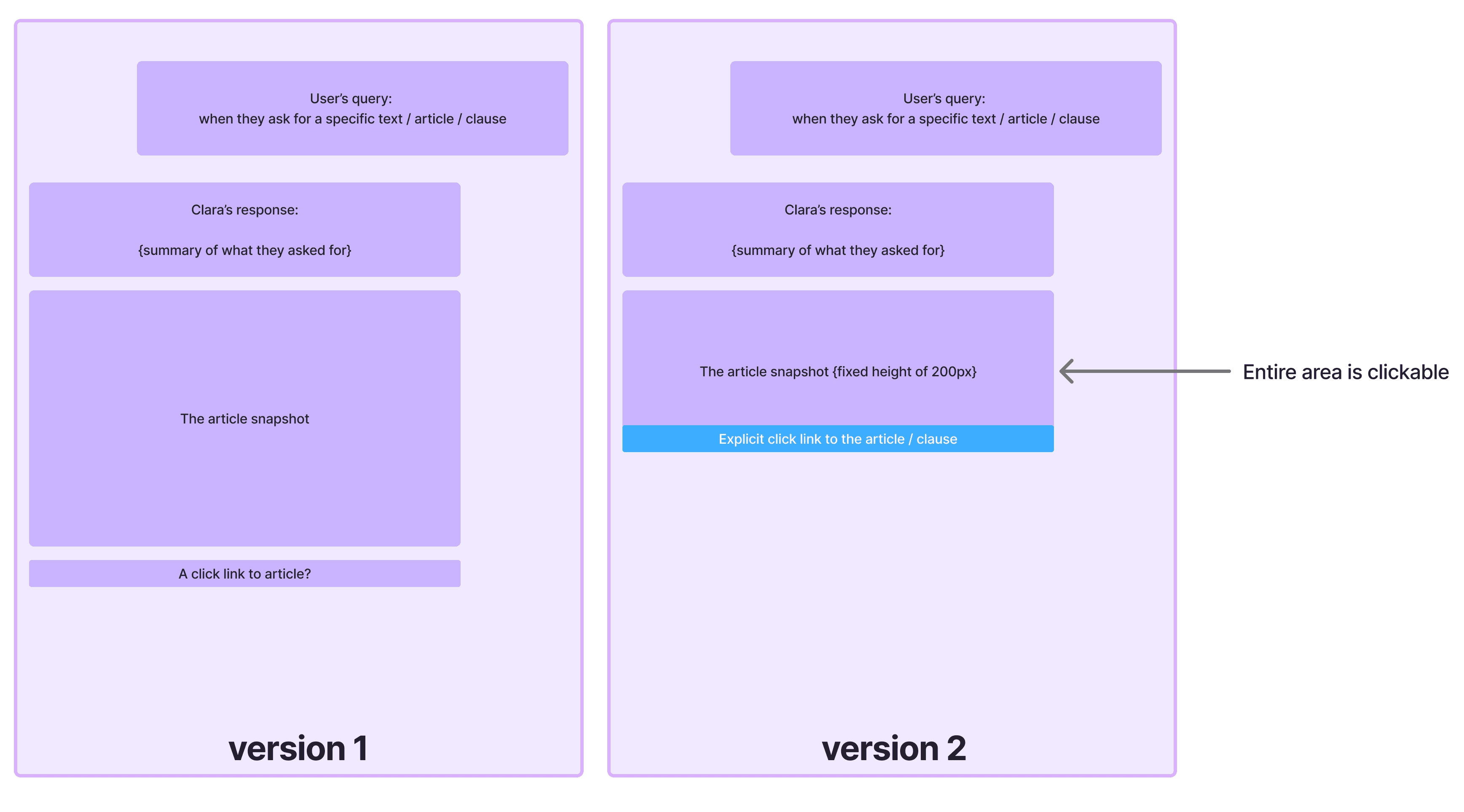 The core purpose of Clara was to do more than just provide answers; it was to give users back their time. We knew that even the most accurate AI response wouldn't be enough, as users need to verify information for themselves.