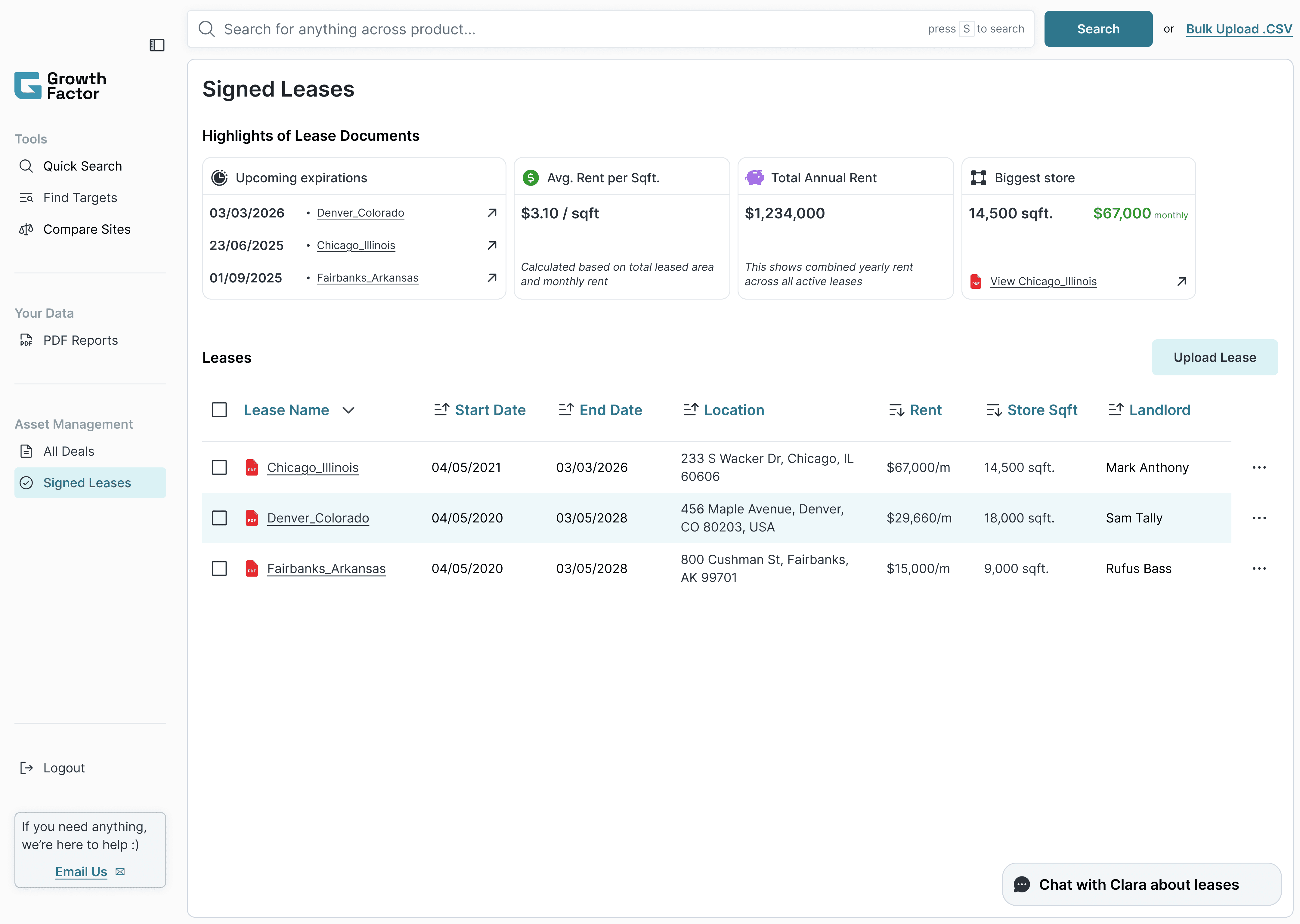Fig: State 1: While on Home Page (i.e. the Lease Management page), Clara answers any question about all leases
