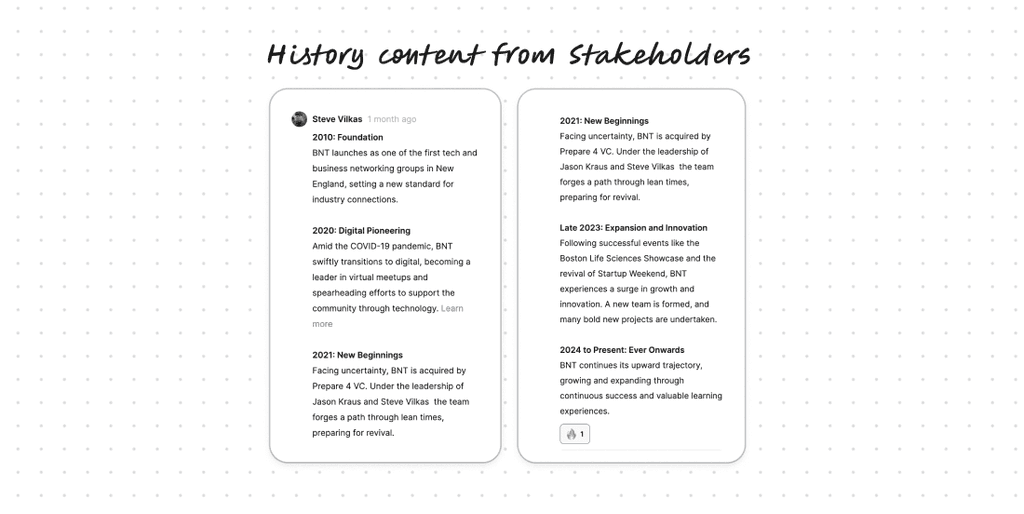 I took on the About Us page, which required me to concisely and beautifully articulate the growth of BNT over the past 10+ years.