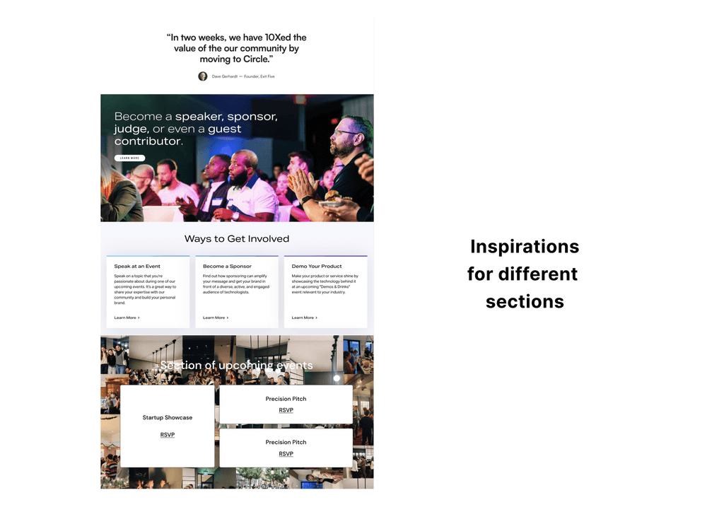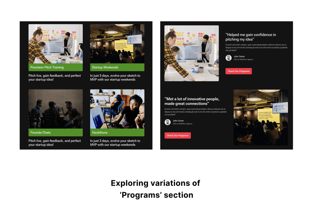 We brainstormed a lot for the wireframes and we collected inspiration to design the new sections