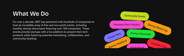 There was another section, "What we do?" which comprised of all the events that BNT undertakes and hosts. We had a vision for that too —