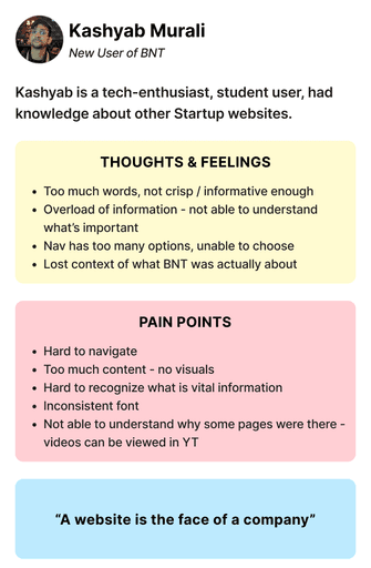 The necessity for BNT's overhaul is clear, yet we conducted interviews to pinpoint content that engages users and identify effective elements. For user interviews, we approached 2 different segments of users :